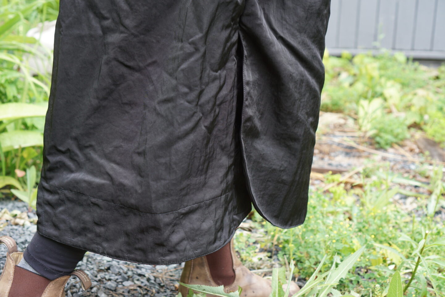 Here’s where I have to tell you about the stupid catastrophically wrong thing I did. I had read through all of the instructions prior to starting, but the translation stuff and the photos were all very distracting and also there were so many pages of instructions and so maaaayybe there ended up being some parts that I just skimmed. But I had confidence (misplaced) in my abilities based on previous experience. The coat was lined and had a hem facing at the bottom, and had a cool side slit where the back hem has squared off edges and the front hem is curved. It’s really cool! I made an assumption based on all of these details and my previous experience that the coat was designed a fully bagged out lining. For those who haven’t sewn a coat, that means that all of the edges of the lining and exterior of the coat are attached together and everything is fully enclosed at the end. Coats designed with that feature have facings along the front vertical edges, along the top of the shoulder area, and at the hem. This coat has all of those facings. But it is not designed to be bagged out. In the construction of this raincoat, the bottom hems do NOT get attached together. But I didn’t realize this.