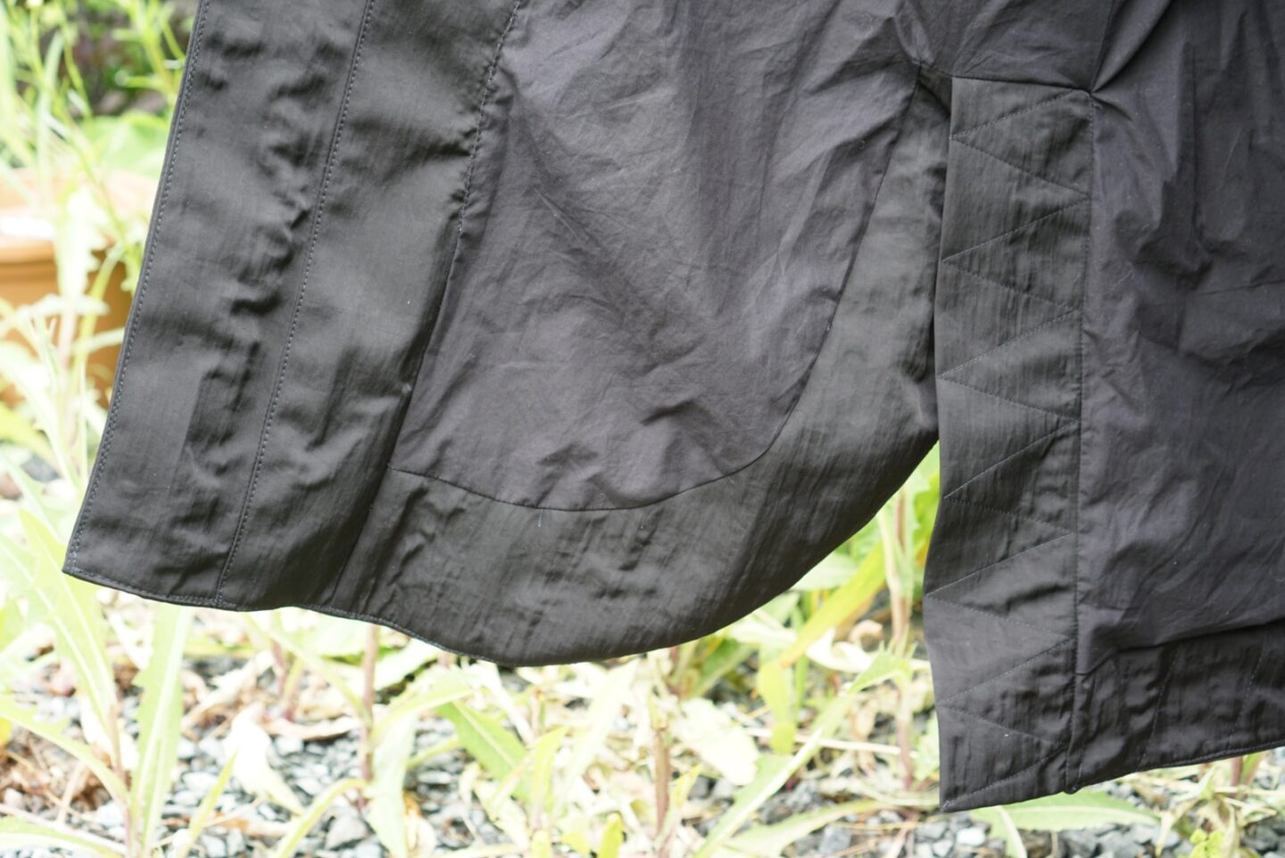 Because of my assumptions about where things were headed, I did not finish any of the interior seams of the raincoat. There were times when I was told to do so, but not always using the same wording for it, and sometimes with different seam allowances specified, and I found that confusing and felt like it was aligning with the mistrust I was already feeling toward the pattern. So I didn’t do them, because I thought it was unnecessary and fussy because everything was going to end up being enclosed. Then, I finished sewing the fussy bits with the side slit and facing and all that jazz (we’re going to gloss over the fact that I had accidentally sewed a strange mobius strip spiral on one of the sides that I didn’t notice until after I had resolved my huge “not a bagged lining” calamity and then had to fix). I looked ahead to the bottom hem stuff, feeling excited that I was nearing the end. And the instructions were telling me to hem the lining separately from the exterior shell, and to sew the turned up hem facing directly to the inside of the exterior shell. I thought I could just bag it anyway, and then tried to pin the facing edge to the lining edge, but the bottom edge of the lining was muuuch more narrow than the exterior edge. That’s because it is Once I realized what had happened, and figured out that the bottom hem edge of the lining was much more narrow than the exterior bottom edge, I almost cried. I wanted to put the project away and never look at it again. I didn’t have remotely enough nylon twill left to cut any other pattern pieces. I didn’t love the idea of going back inside the raincoat and trying to overlock all of the edges after the fact as best as I could manage. I thought it would look sloppy and I also didn’t want the lining to be free hanging, I wanted it to be bagged because that was the image I had cemented in my mind.
