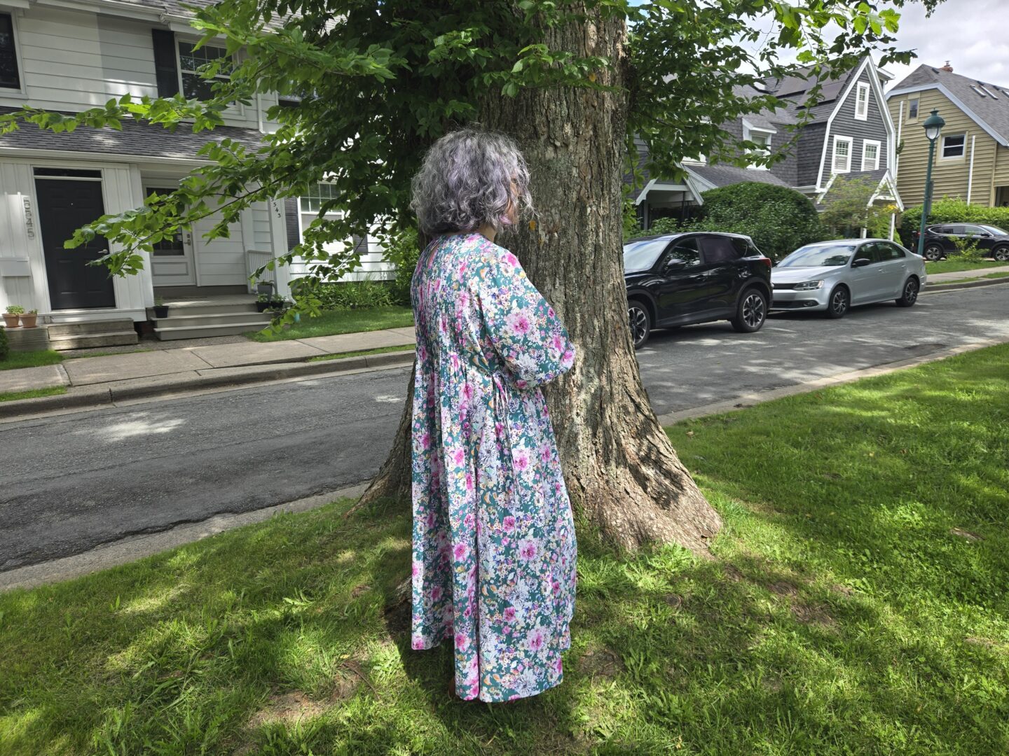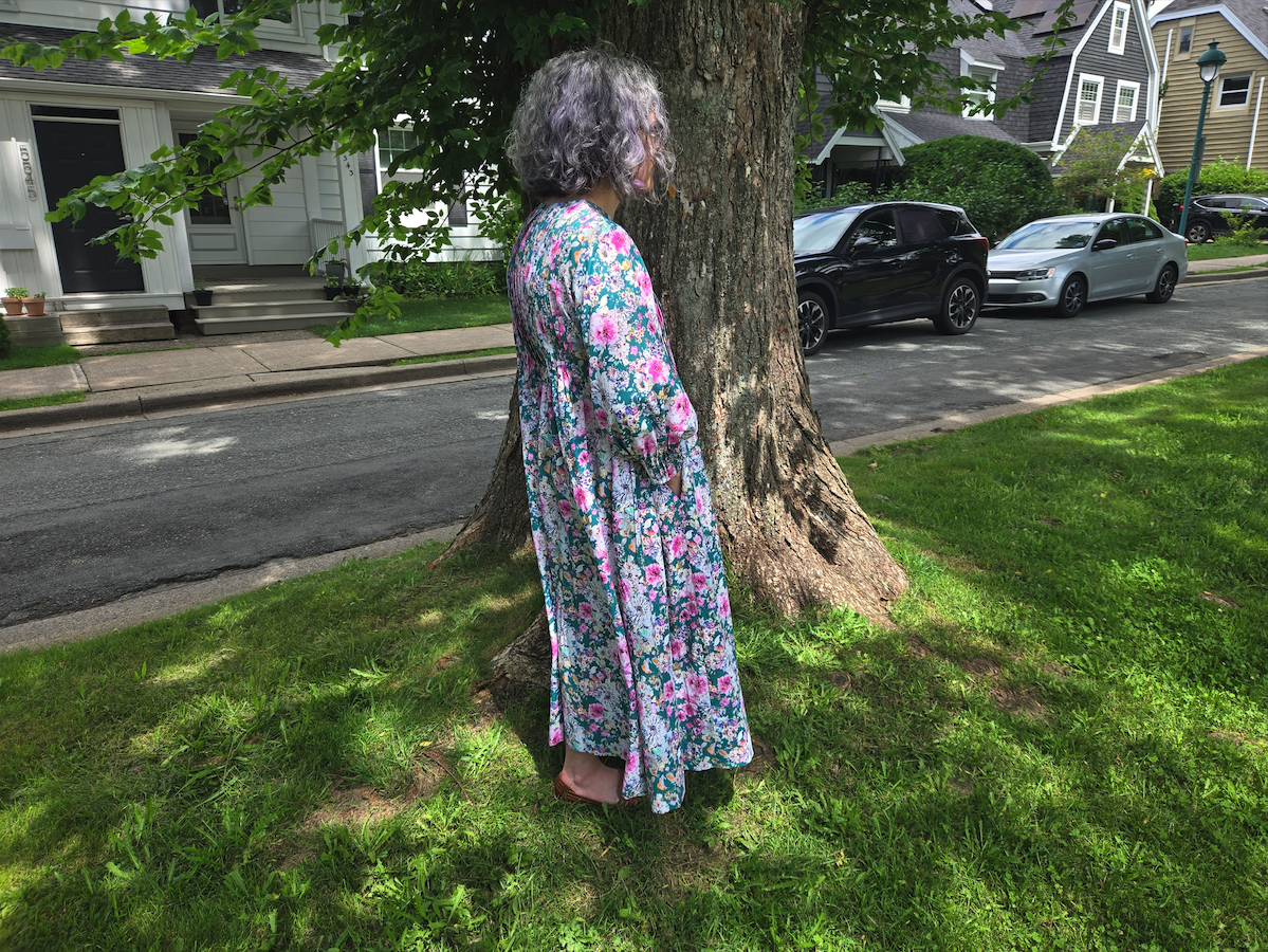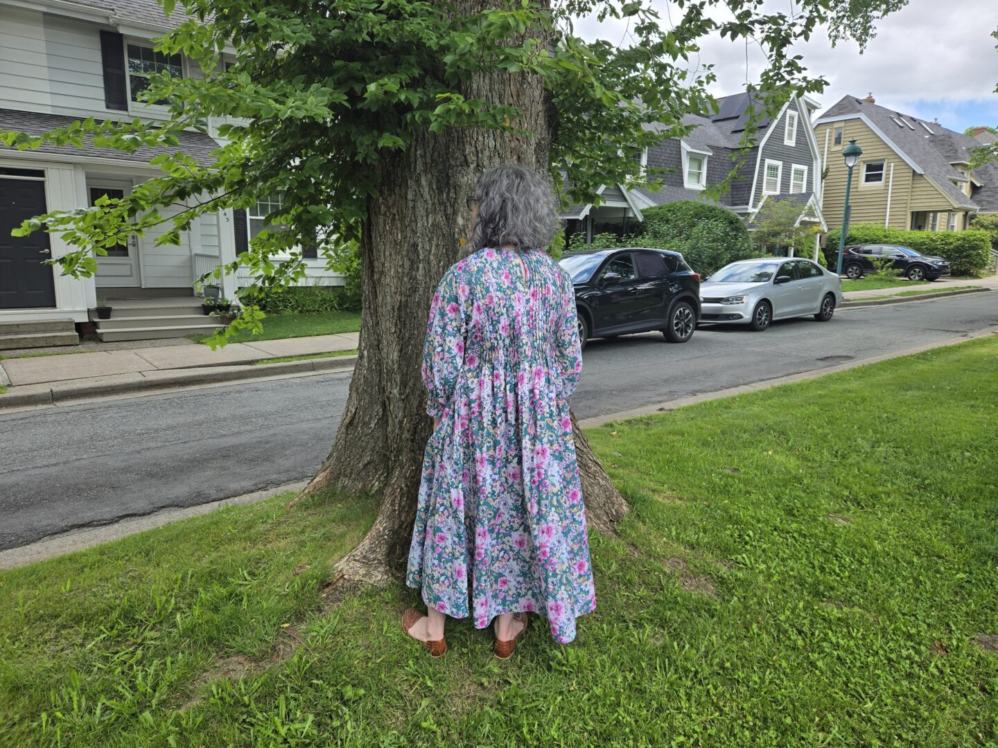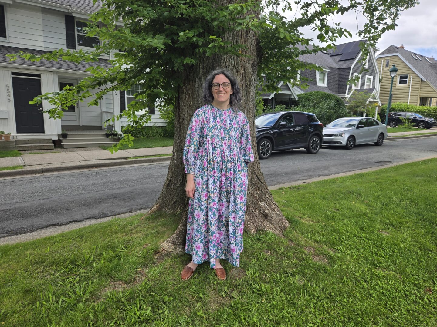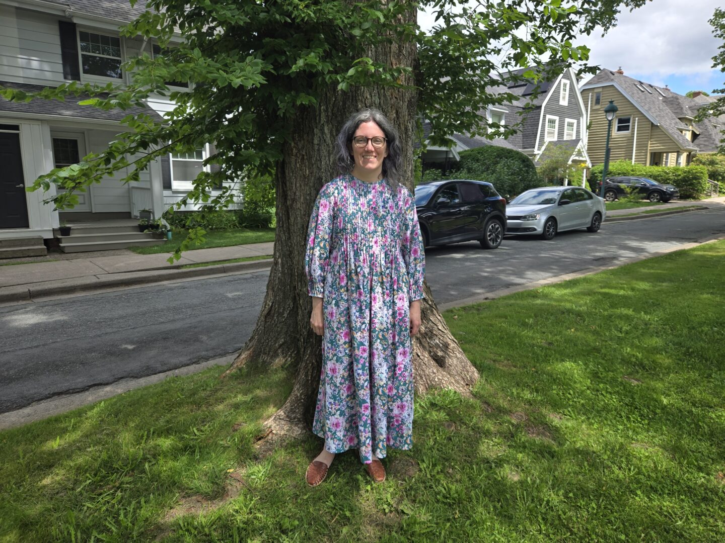 I made this dress a few months ago, and then didn’t take photos until one month ago, and am only just posting about it now. But I’m here! I’m doing it! I have a pretty big backlog of stuff that I’ve made but haven’t gotten my act together to actually share, so I’m hoping to remedy that before September. Starting with this dress! I did most of the sewing on this dress while I was away in May with crafty friends in Cape Breton on a sewing getaway, and then finished the last little bits after I got home. It’s the Garden Dress by Frux Studio, a floaty beauty with loads of pintucks, and it’s a pretty labour-intensive sew. I definitely questioned whether I had bitten off more than was reasonable for a long weekend of sewing – I usually try to choose something that I can finish within the timeframe so I can feel that sense of accomplishment. But I mostly did it! Here it is!