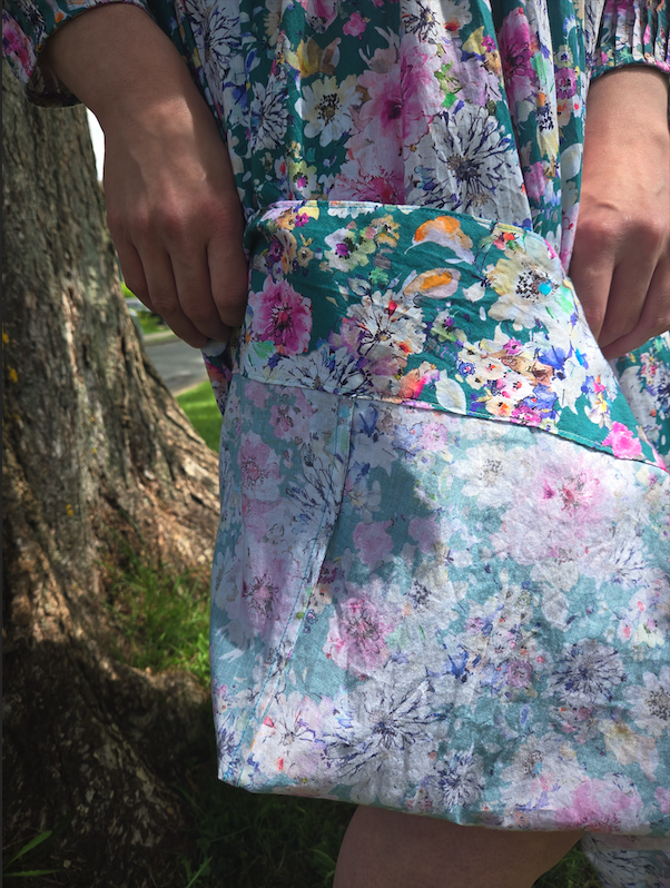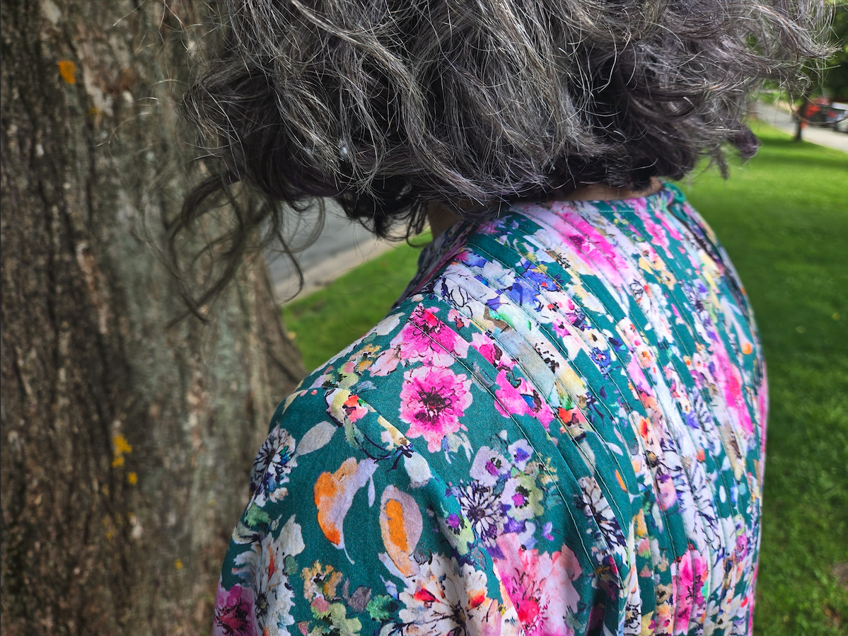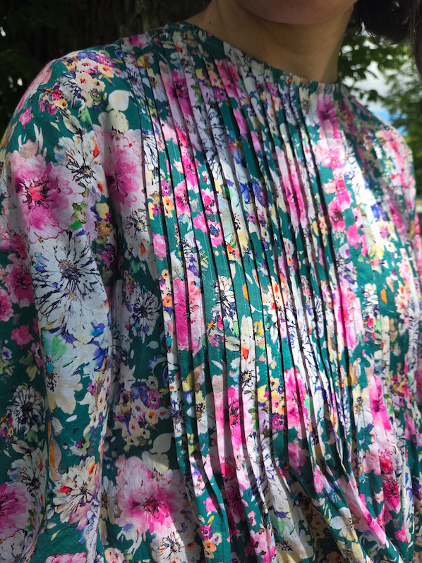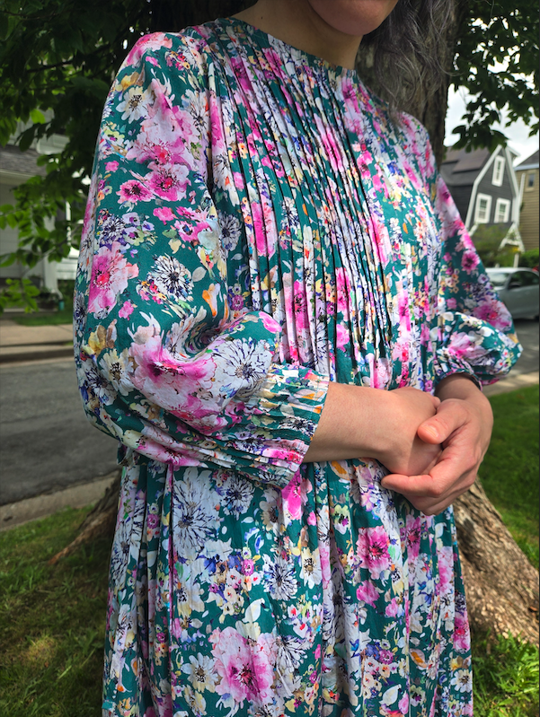 This is my second time sewing this pattern, so I mostly knew what I was getting into. The previous time I sewed it, I didn’t do sleeves, so this was a bit more work in that regard. However, the first time I sewed the Garden Dress, I did it in a linen. Choosing that fabric was not very kind to myself, especially since it was my first ever time sewing pintucks. It was such a pain because of how much linen shifts and distorts, and the linen I was using also had a bit of a looser weave. I love how the dress turned out, but knew I wanted something crisp and easy to sew for my next version. For that reason, I went for a cotton lawn. I got this from Fabricville, and also got another floral print at the same time that I’m planning to use for this pattern as well. The other print is less busy and I like it slightly more than this one (although I really like both!) so I used this one first in case there were any issues with fit when I did a version with sleeves. What a difference the fabric makes to the whole process!