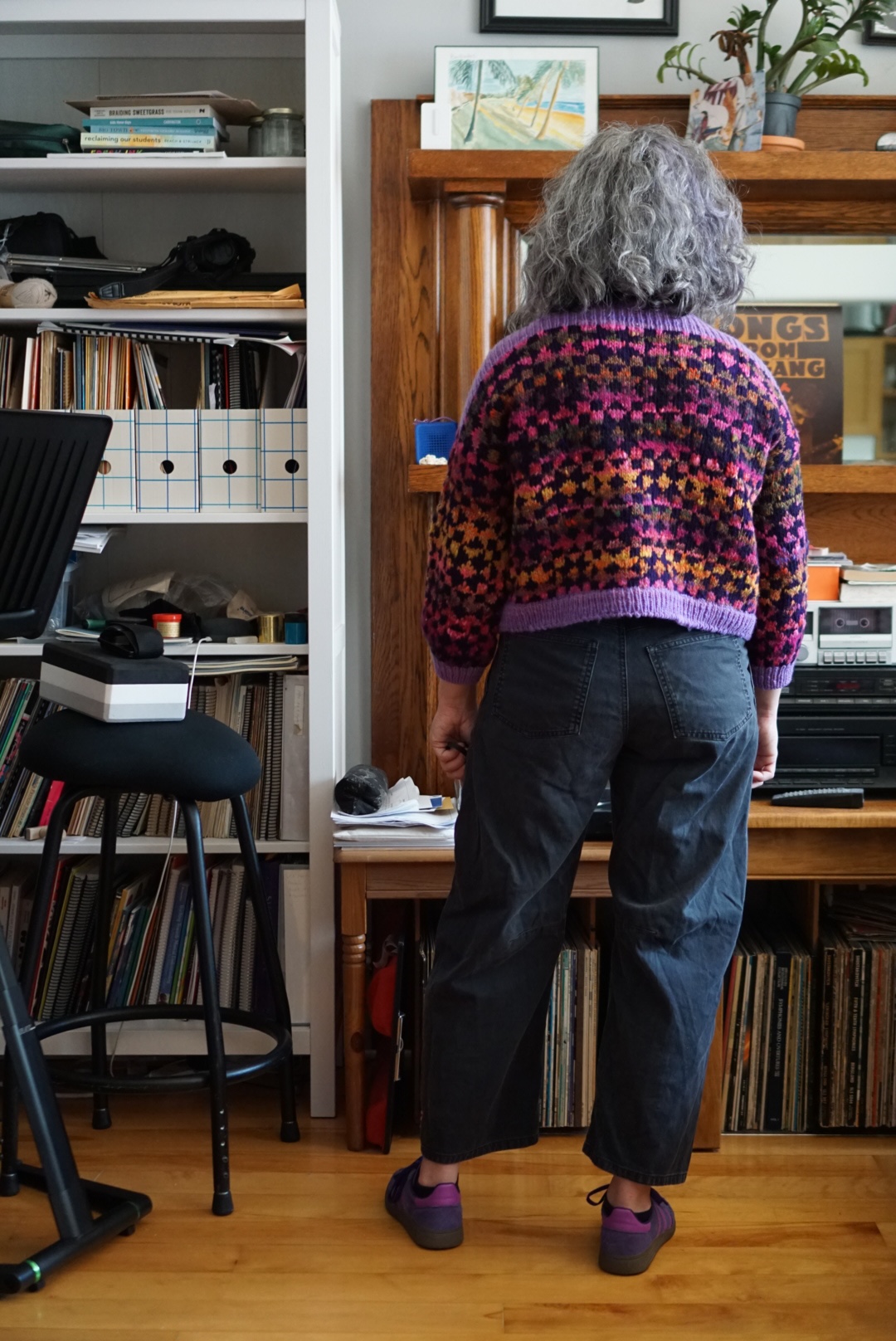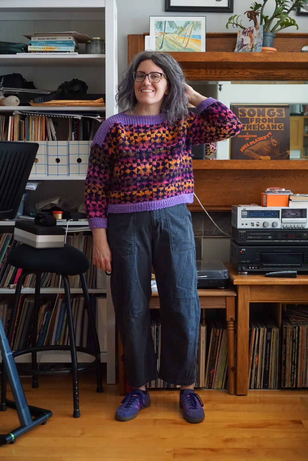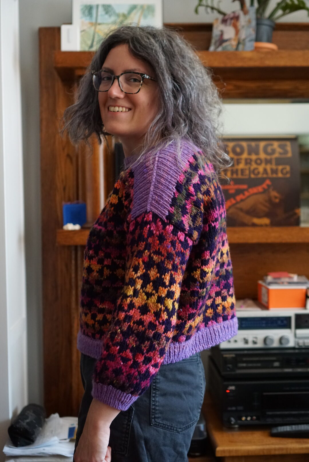 This sweater came out exactly as I’d hoped it would when I first started my Framed scheming! I’m excited to wear it lots once it gets cooler – when I took these photos it was the middle of a heatwave and I got SO SWEATY. Trying to look cool and calm while being super warm and trying to get the photos done as quickly as possible was a challenge for this not-model. I’m a bit late to the Framed train because it was for Rhinebeck last fall, but since I have never been to Rhinebeck, I say better late than never!